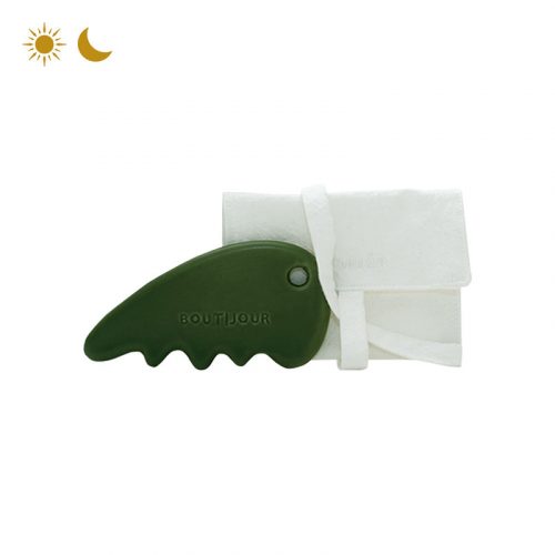El Greentox Gua Sha de Boutijour es la herramienta perfecta para tu rutina de belleza facial. Diseñada específicamente para estimular los músculos pequeños del rostro y el cuello, esta piedra facial hecha a mano con cerámica 100% natural ofrece un masaje relajante que mejora visiblemente la apariencia de tu piel. Ideal para un tratamiento de drenaje linfático, su uso regular ayuda a eliminar toxinas, reducir la hinchazón, ojeras y suavizar las líneas de expresión y arrugas. Gracias a su diseño ergonómico, el Greentox Gua Sha se adapta perfectamente a la forma del rostro, haciendo que su uso sea cómodo y eficaz. Esta piedra es suave al tacto, garantizando una experiencia relajante y rejuvenecedora que eleva la firmeza y elasticidad de la piel.