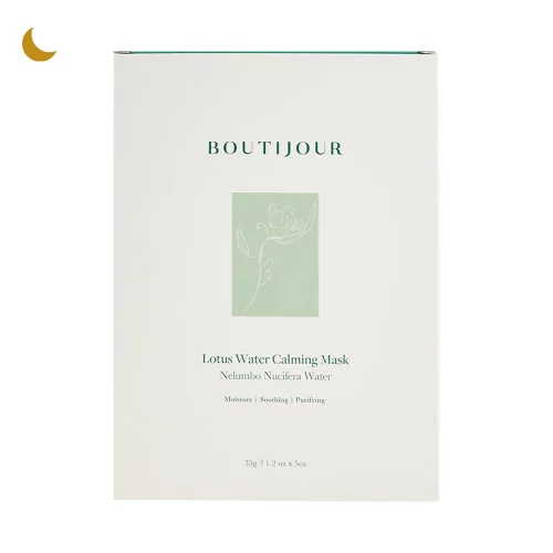 Boutijour Lotus Water Calming Mask 5 uds Mascarilla de tejido que calma y alivia la piel del estrés medioambiental. Formulada con agua de Loto, ayuda a relajar e hidratar la piel irritada. Su fórmula proporciona hidratación profunda, ayuda a reducir la inflamación y la irritación de la piel, mejora la elasticidad y combate los signos de envejecimiento. Proporciona una sensación de calma y frescura, dejando la piel suave, flexible y radiante. Incluye 5 mascarillas.